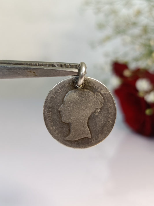 Antique 1846 Early Victorian Grout Four Pence Coin Charm