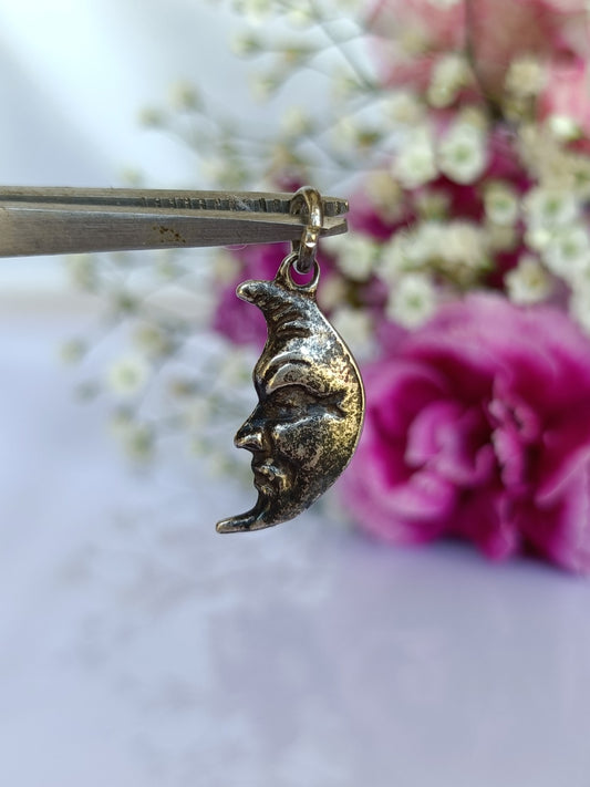 Antique/Vintage Old Sterling Silver Man In The Moon Double Sided Moon Face Charm